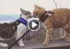 Adorable Cat Tries To Wake Up Sleepy Dog