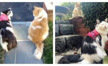 Senior Rescue Cat Spends All Of His Time With His Brand-New Baby Sister