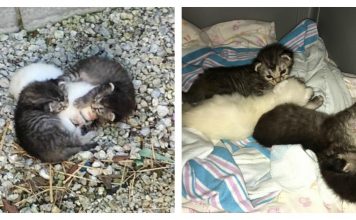 An adorable litter of three kittens were found huddling up together. Two kittens were wrapped around their tiny trembling sister. The other two were...