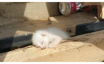 Kitten Found Alone in Pallet Yard Snuggles Up Rescuers Shoulder and Won’t Let Go