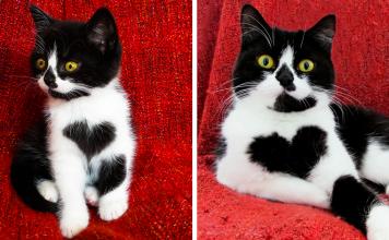 Meet Panda, Friendly Cat With Vitiligo Markings Who Gives People Surprise Greetings