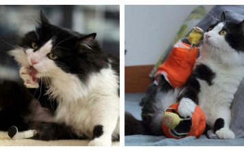 Senior Shelter Cat Gets Adopted But Then Can’t Fall Asleep Unless His Human Holds...