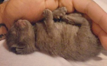 Abandoned Kitten Is Crying To Sleep With His Rescuer On The First Night