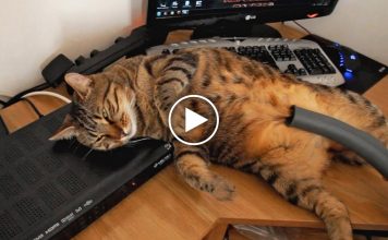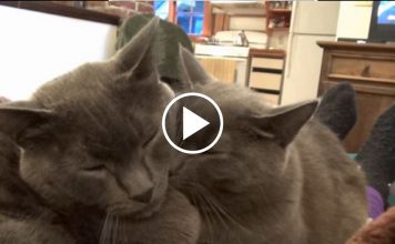 An absolutely adorable moment was captured on camera when this mother cat named Pino playfully hugs her little kittens.