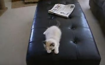 Prepare to laugh as this kitty will make you smile. In this video it seems that the family kitten has found a new enemy....