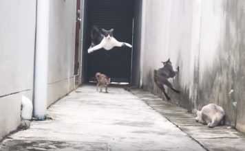 Mama Cat Introduces Her Little Kitties To An Old Buddy