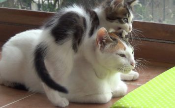 Adorable Cat Tries To Wake Up Sleepy Dog